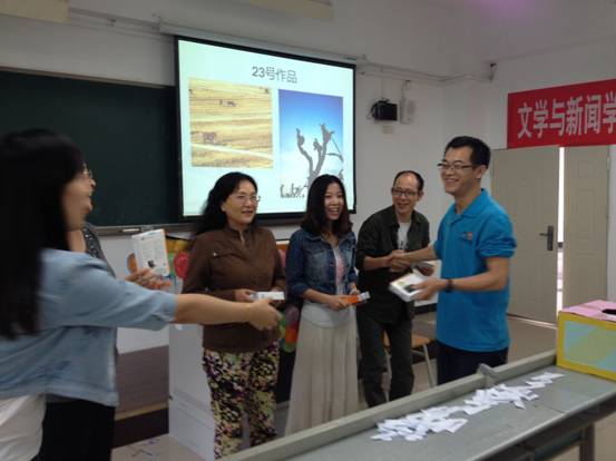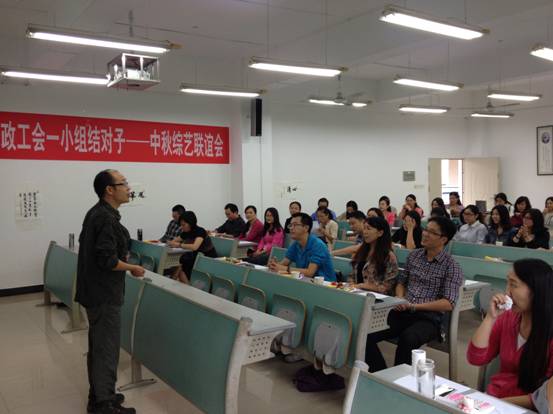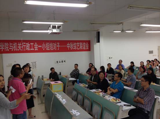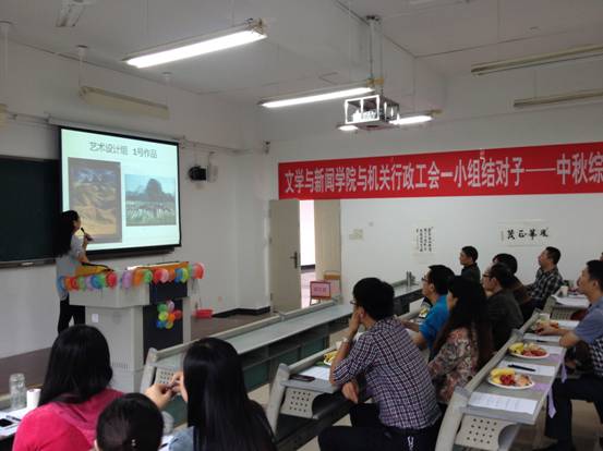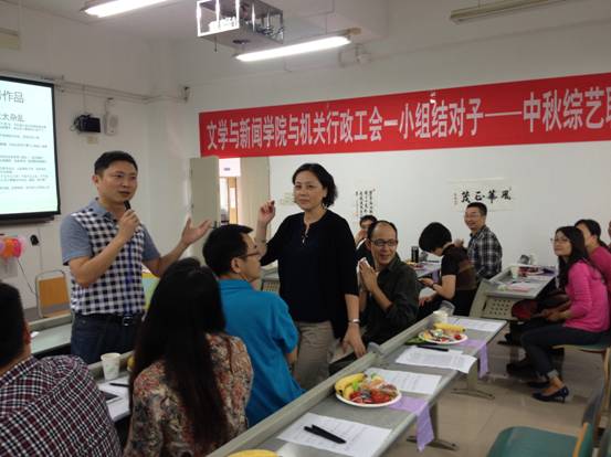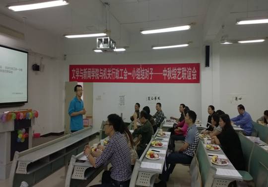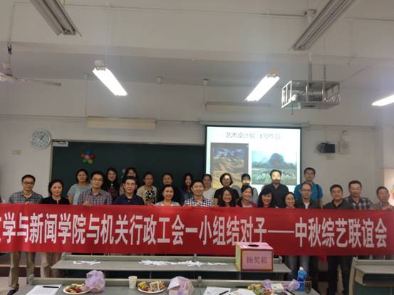 9月25日,文学与新闻学院工会携手我校机关行政工会一小组,共同举办了“中秋综艺联谊会”。会上,由学院教师和机关行政工会一小组代表们组成的大众评审团,对前期在工会会员中征集到的各类文艺作品进行了现场评分,并给获奖教职工颁发了奖品。