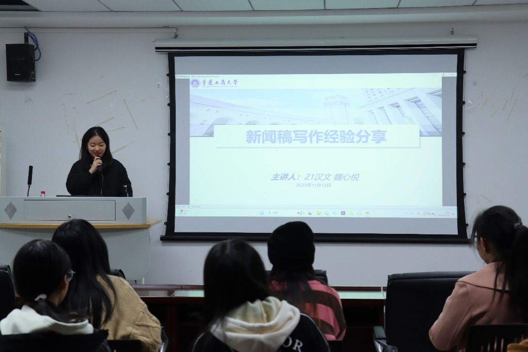 11月12日,文学与新闻学院新媒体工作室技能培训会于重庆工商大学学生发展中心会议室顺利召开。此次培训会邀请21级优秀学生代表施明秀、魏心悦和邓彬悦担任主讲,工作室成员肖华辉主持,共计30余位成员参会。