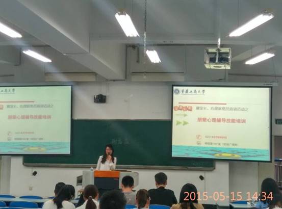 5月15日下午2:30,文学与新闻学院在慧智楼90326教室举办“寝室长、心理联络员之朋辈心理辅导技能培训”为主题的心理辅导讲座。讲座邀请西南大学在读研究生谢盈盈同学主讲,学院各班心理联络员、各寝室室长参加了本次讲座,讲座由学院心理联络员肖婷老师主持。
