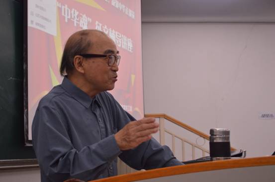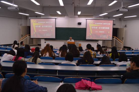 5月15日下午,由重庆工商大学关工委主办,文学与新闻学院院承办的“践行核心价值观,凝聚中华正能量”中华魂征文辅导讲座在慧智楼90226教室举行。文新学院退休教师傅德岷教授主讲,关工委办公室主任周惠明、常务副主任吴应发、文新学院党总支副书记李华平、辅导员代表及部分学生代表参加了本次讲座。