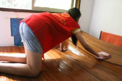 面对邓倩凌乱的房间,在场的志愿者迅速分为两组,一组清扫地面,一组擦拭窗台和家具。扫出来的垃圾清理了一波又一波,抹布清洗了一次又一次,不一会儿汗水就浸湿了志愿者的衣服。