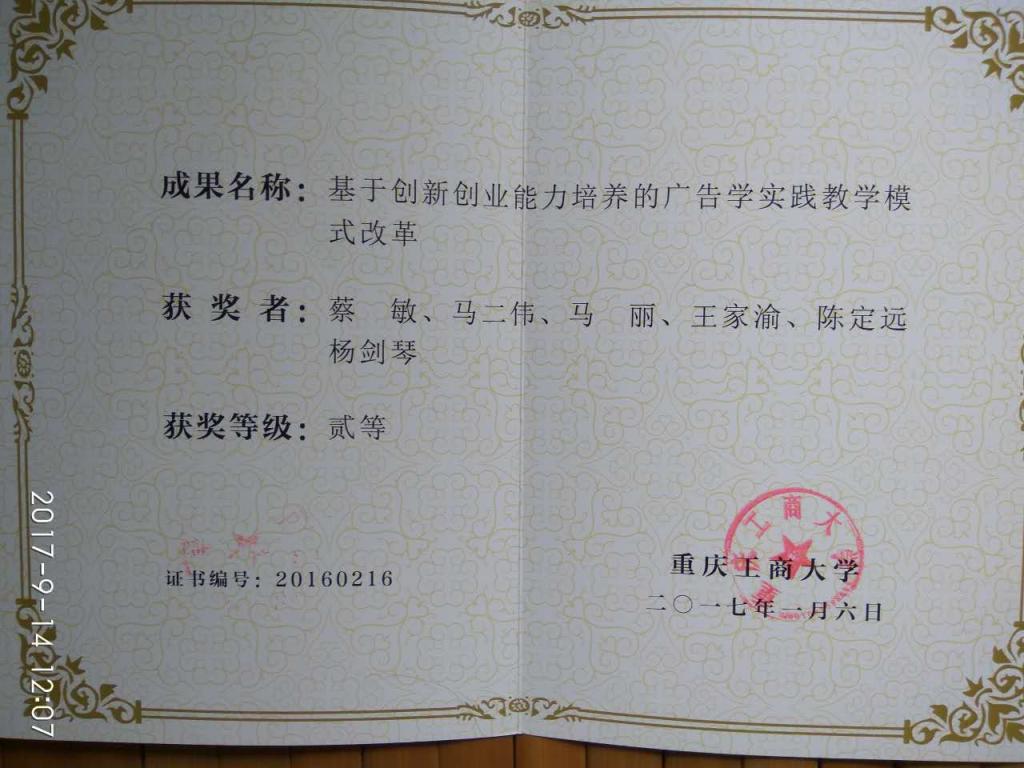 赵骅副校长宣读了《关于公布2016年校级教学成果获奖名单的通知》,我院蔡敏老师等6名老师获得我校教学成果二等奖。