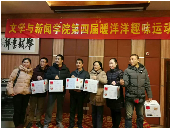 2018年1月4日下午,文新学院在风景如画、书香四溢的南山书院成功举办了第四届暖洋洋教职工趣味运动会。虽然寒风凛冽、冬雨飞扬,文学与新闻学院策划的大型趣味运动会无法在室外举行,但文新学院全体教职工热情不减,因地制宜在室内举行了一场别开生面的趣味运动会!此次以中国传统投壶为竞赛项目,活动受到了学院教职工的积极响应和广泛参与,现场气氛热闹非凡、高潮跌宕。