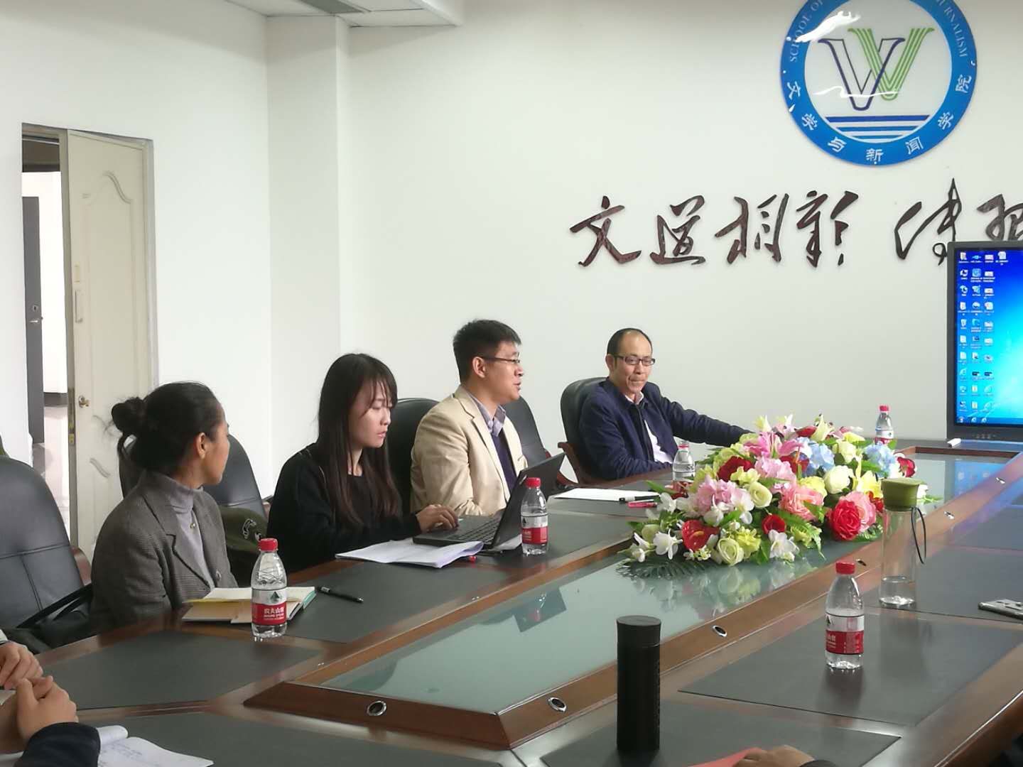 段庸生书记、蔡敏院长介绍了我院的历史沿革、师资力量、学科建设、特色专业等情况,希望依托中国传媒大学的专业优势,推进我院科研成果和教学成果再上一个新台阶。