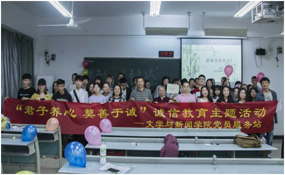 为提高学生的思想道德素质、传承学习中华优秀传统文化和培养学生诚实守信意识,6月1日下午,文学与新闻学院党员服务站在慧智楼90222成功举办“君子养心,莫善于诚”诚信教育主题活动。文新学院分党委副书记李华平、学生处公寓管理科冯湛老师、关工委指导老师陈显荣、文新党服指导老师杜建清及文新党服成员一起参加了此次活动。