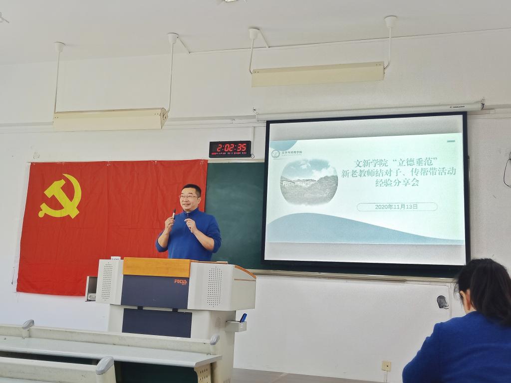 11月13月下午,文新学院在90625教室开展了“立德垂范”新老教师结对子、传帮带活动经验分享会。文新学院全体教职工参加了会议,会议由党委书记李华平主持。
