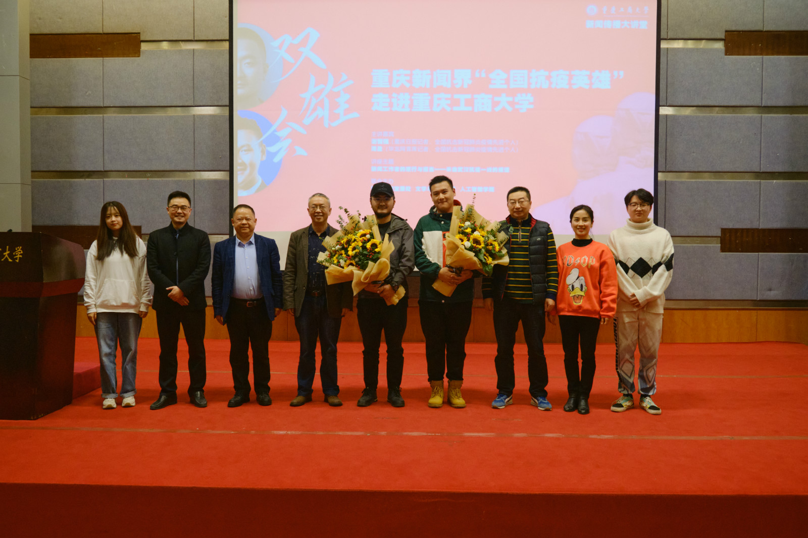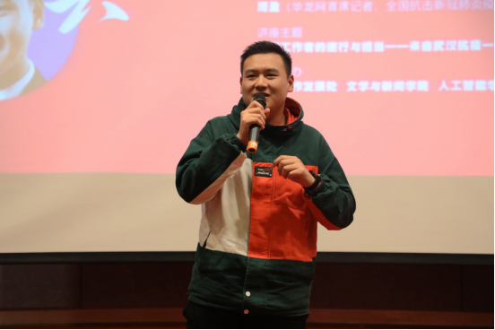 11月20日下午,全国抗击新冠疫情先进个人、重庆日报首席记者谢志强,全国抗击新冠疫情先进个人、华龙网融媒体新闻中心首席记者、我校校友周盈应文学与新闻学院邀请,在我校博智楼7100报告厅作了题为“新闻工作者的逆行与担当——来自武汉抗疫一线的报道”的主题讲座。讲座由我校国内合作发展处、文学与新闻学院、人工智能学院联合主办,文学与新闻学院党委书记李华平、院长王仕勇,相关职能部门和学院师生参加了讲座。讲座由文学与新闻学院王世华老师主持。