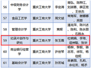 2020年12月25日,重庆市教委正式公布了2020年高校线下、线上线下混合式和社会实践一流课程认定结果,430门课程获得本次认定。重庆工商大学共有13门课程获得认定,由文学与新闻学院张玉霞、杜晓娟、李琦、俎神聪、张华老师为团队组织申报的《纪录片创作与研究》课程名列其中。