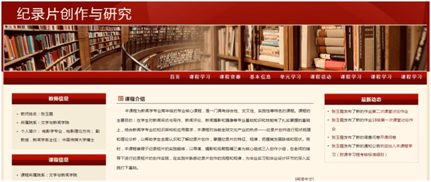 《纪录片创作与研究》课程自开设以来,采取多媒体授课方式,以课堂教学和案例分析为中心,教师讲授和学生讨论相结合,不断探索参与式教学方法,建立线上讨论答疑区、设置理论研究板块、分享类型丰富的课程资源,全方位为学生提供渗透式、交互式学习平台,受到参与学生的广泛好评。