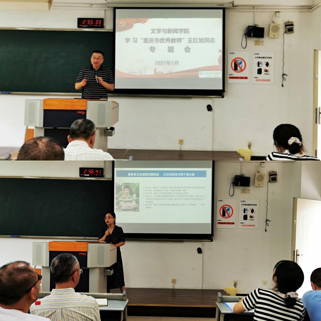 7月9日,文学与新闻学院在慧智楼90625教室召开学习“重庆市优秀教师”王红旭同志英雄事迹专题学习会议。会议由党委书记李华平主持,全院教职工参加会议。