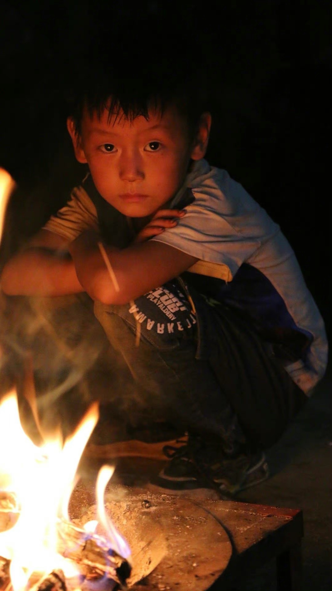 俄木雨星摄影作品 火塘边的男孩
