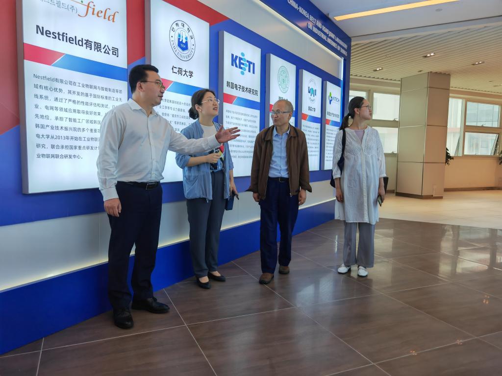 重庆邮电大学工业互联网现代产业学院副院长吕霞付带领大家先后参观了工业互联网与智能制造创新应用体验中心、中韩政府间合作项目平台、学生公寓等。