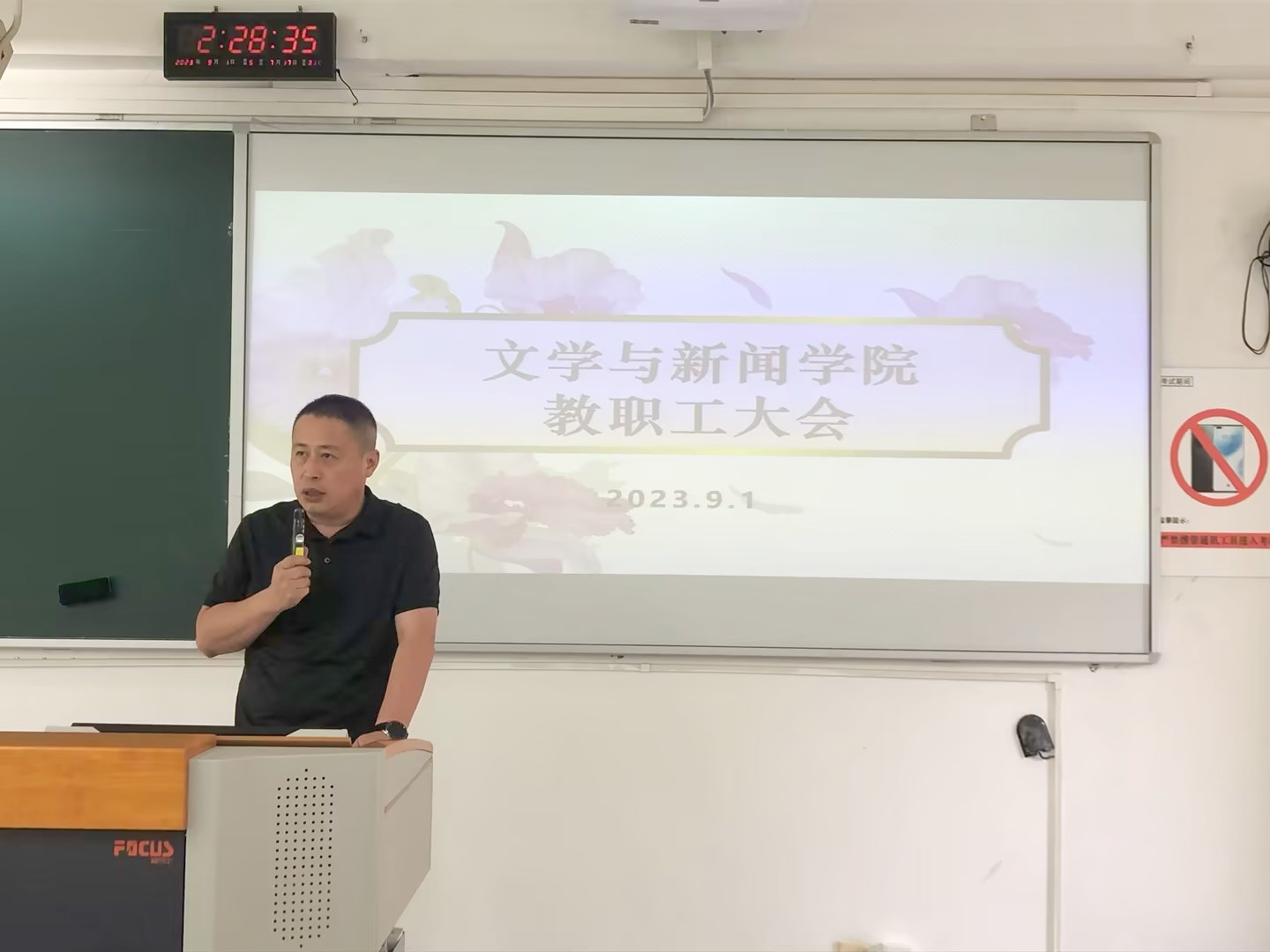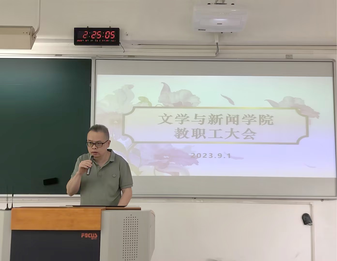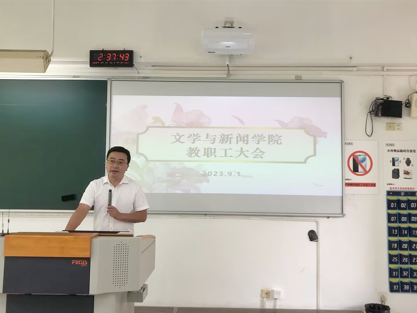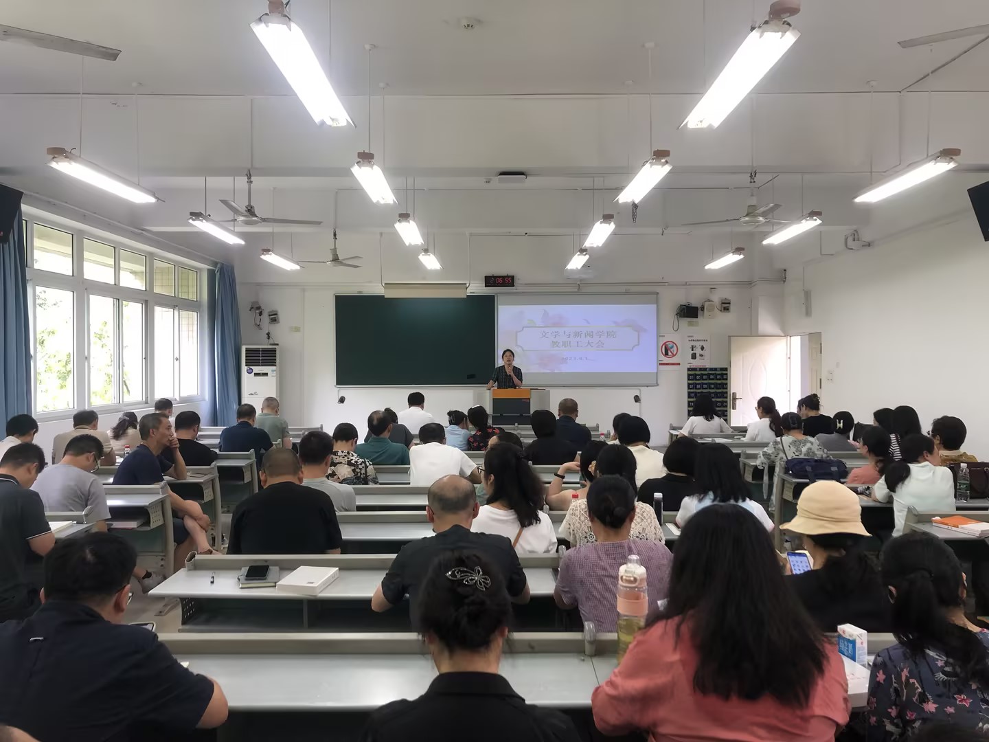 开学初,文学与新闻学院在慧智楼90625召开新学期全体教职工大会,总结暑期各项工作、布置新学期党建、教学、科研、学生等各方面工作要点。学院领导和全体教职工参会,本次大会由学院党委书记于频主持。