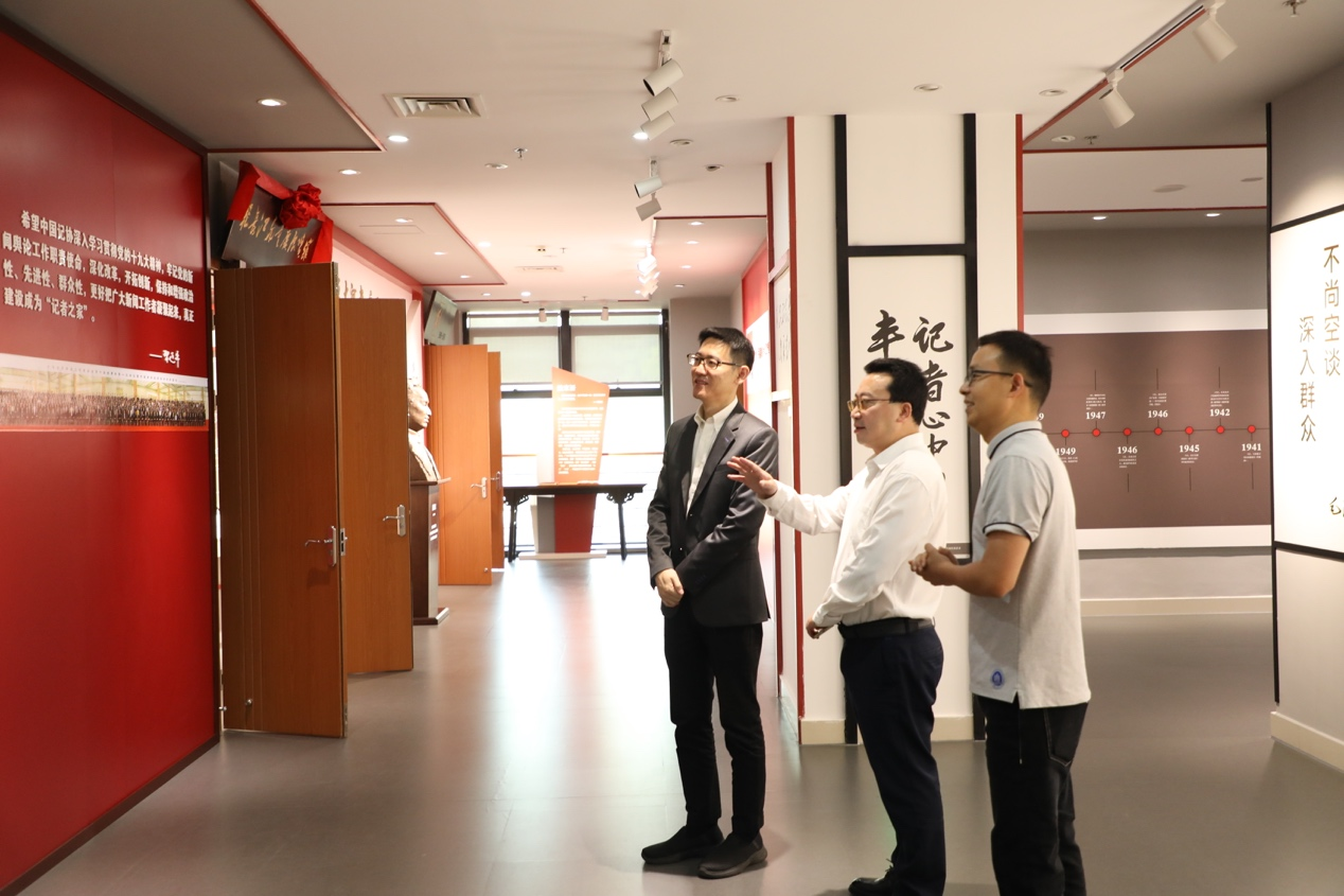 上午8时许,韦路来到范长江与重庆展览馆参观。在范长江与重庆展览馆,谈华伟担任讲解员,从范长江大事记和报纸墙、范长江简介、范长江与重庆、范长江对新闻事业的贡献、长江韬奋奖五个部分为韦院长讲述了范长江与重庆的故事。韦路指出,范长江是新中国新闻事业的奠基人,在中国现代新闻史上具有重要的地位,要充分利用好红色资源,将范长江与重庆展览馆作为教育资源新闻传播人才培养重要的教育资源,践行马克思主义新闻观。