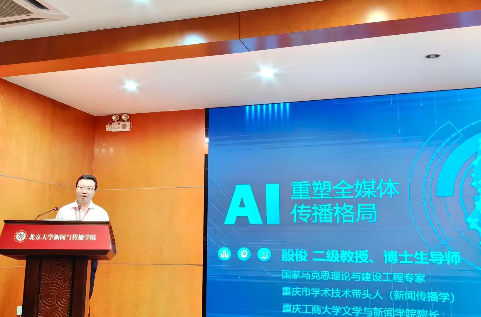 院长殷俊从AI拓宽传播深度与广度,AI加强分众化、差异化传播趋势,通过AI“在人的心灵里搞建设”和坚定AI时代“高质量”传播价值观四个方面进行了阐述,提出运用AI等先进前沿的网络信息技术,整合新媒体先进文化传播资源和传统媒体历史文化资源,创建多元、立体、覆盖广阔时空维度传播形式;让智能技术创新成果通过科技普惠的形式,成为助力解决社会痛点、传递温暖的最佳途径。针对AI时代传播面临的隐私数据泄露风险、信息来源信任危机、信息生产的同质化、隐藏的传播偏见等问题,提出新闻工作者要凸显使命责任担当,遵循新闻舆论传播规律,将“大流量”思维转变为“高质量”思维,保障人民群众知情权、参与权、表达权、监督权,不断提升新闻舆论公信力。