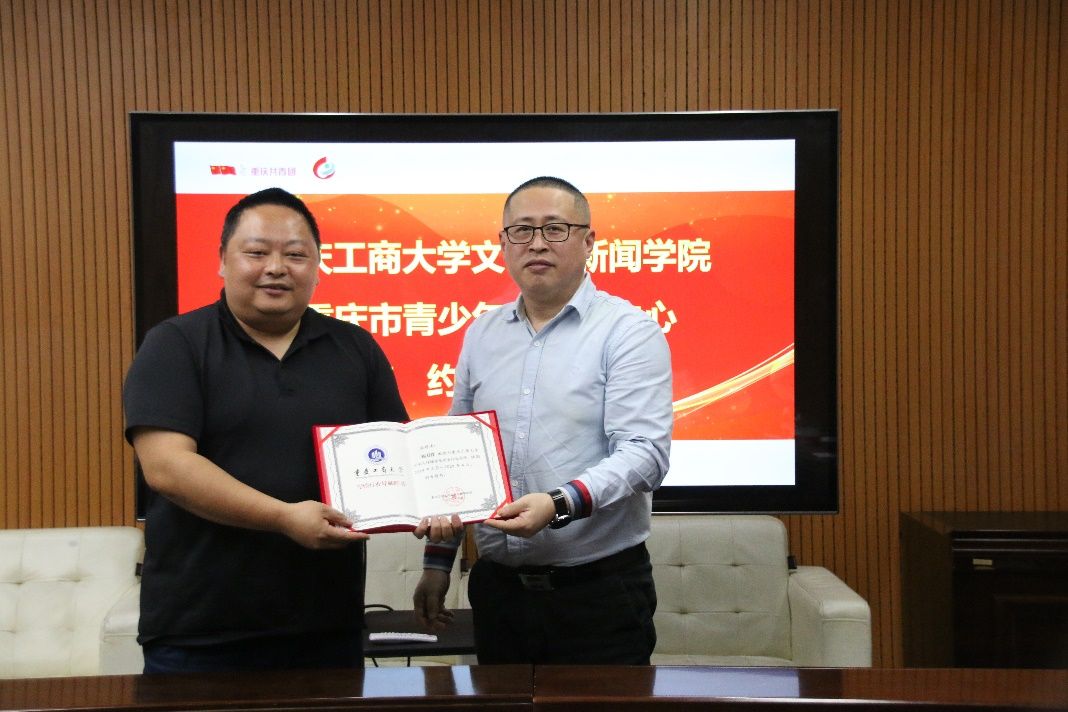 随后,双方签订了388vip太阳集团与团市委新媒体中心(重庆青年报)共建实习基地协议书。聘请杨万洋、于丁丁担任388vip太阳集团专硕行业导师,同时我院殷俊院长被聘为重庆共青团新媒体平台首席顾问。