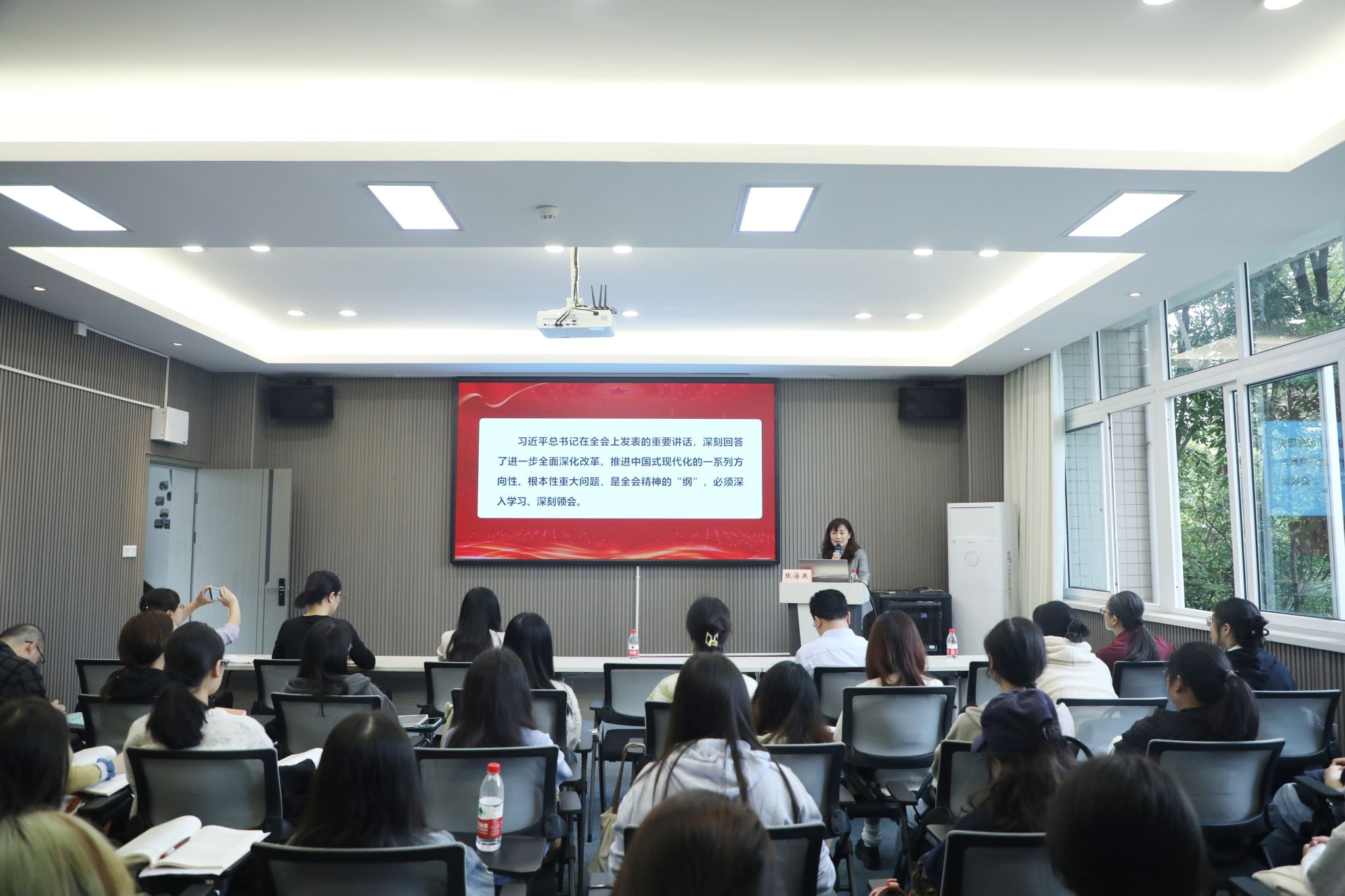 接着,她从以下五个方面对党的二十届三中全会精神的丰富内涵和精神实质进行了深入解读。第一,她介绍了党的二十届三中全会的基本情况、会议背景以及重大意义,指出这次会议是以中国式现代化全面推进强国建设、民族复兴伟业的关键时期召开的一次十分重要的会议。第二,深入学习领会习近平总书记在党的二十届三中全会上的重要讲话精神。她指出,习近平总书记在全会上发表的重要讲话深刻回答了进一步全面深化改革、推进中国式现代化的一系列方向性、根本性重大问题,是全会精神的“纲”,必须深入学习、深刻领会。第三,全面准确理解《决定》提出的进一步全面深化改革重大举措。她着重解读了教育、科技、人才是中国式现代化的基础性、战略性支撑,分析了全国高等教育的普及化程度以及重庆高等教育结构存在的问题,指出必须统筹推进教育科技人才体制机制一体改革。第四,贯通学习习近平总书记对重庆改革工作的系列重要指示要求,加快打造全面深化改革先行区。第五,全力以赴抓好全会精神贯彻落实。