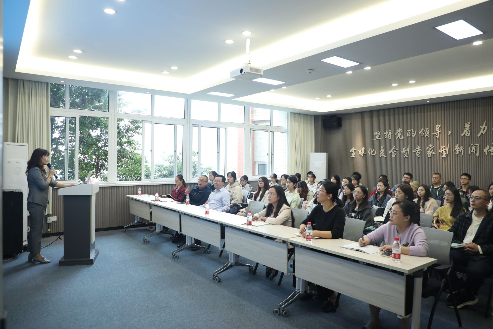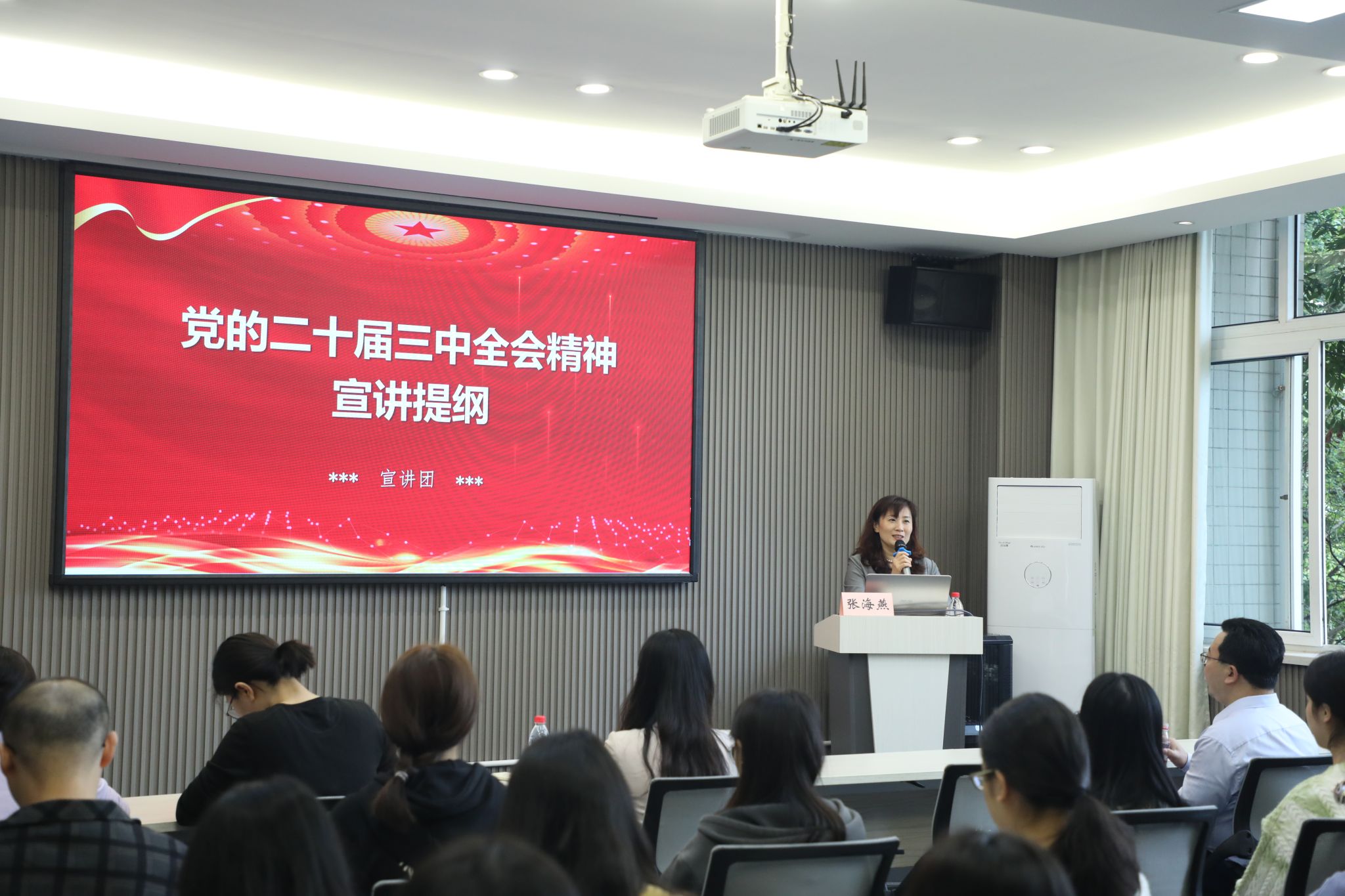 10月14日上午,学校宣讲团成员、纪委书记张海燕在慧智楼90529学术厅作学习贯彻党的二十届三中全会精神宣讲报告,机关党委第二支部人员,文学与新闻学院领导班子全体成员、师生党员代表、入党积极分子代表共计50余人到会聆听了宣讲。宣讲会由文学与新闻学院党委书记潘焱主持。