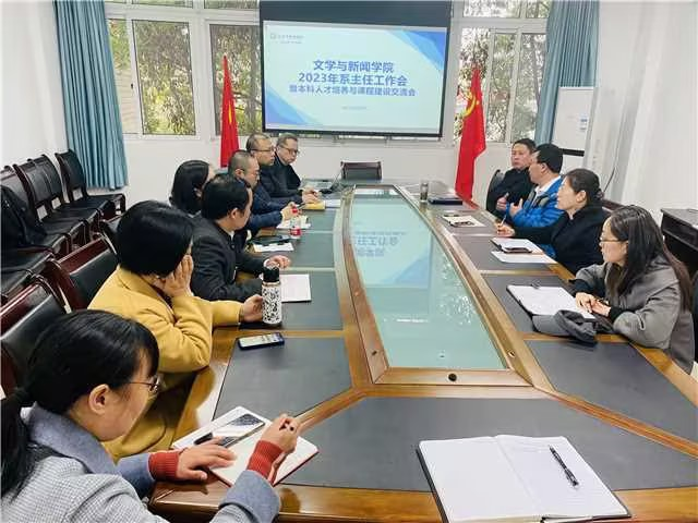 会议由郑笑眉副院长主持,汉语言文学周之涵主任、网络与新媒体系姚琦主任、广告系王凌峰主任、广播电视学系谈华伟老师与新闻系邵茹波老师参加会议。