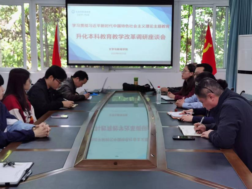 根据学习贯彻习近平新时代中国特色社会主义思想主题教育调研工作安排,推进本科教育教学审核评估自评、“三进”工作和期中教学检查,了解学生思想、学习、生活动态,文学与新闻学院于2023年4月25日在90528会议室,召开了深化本科教育教学改革暨学期期中调研座谈会。学院党委书记于频、院长殷俊院长、副书记程元元、副院长郑笑眉、各系主任以及2021、2022级各班学生代表参加了会议。会议由副院长郑笑眉主持。