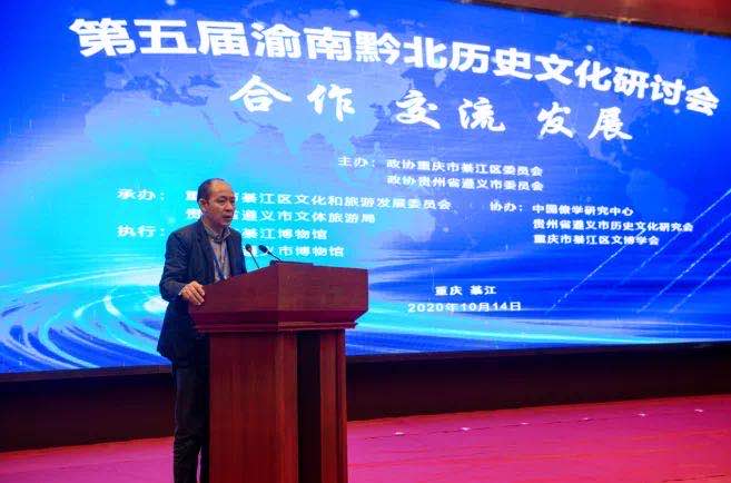 为加强渝南黔北两地文化交流,充分保护利用好渝南黔北历史文脉,加快渝黔合作先行示范区建设,推动两地共同发展,2020年10月14日,第五届渝南黔北历史文化研讨会在綦江顺利召开,主办方是政协重庆市綦江区委员会、政协贵州省遵义市委员会,承办方是重庆市綦江区文化旅游委、贵州省遵义市文体旅游局、重庆市綦江博物馆、贵州省遵义市博物馆,协办方是中国僚学研究中心、贵州省遵义市历史文化研究会、重庆市綦江区文博学会。2020年10月14日上午,近一百名专家学者和专业工作人员参加了开幕式,参会人员主要来自北京、湖北、湖南、广西、广东、四川、重庆、贵州、云南等地及中南大学、西南大学、重庆大学、湖北大学、重庆师范大学、重庆工商大学、第三军医大学、重庆第二师范学院、贵州民族大学、遵义师院、三峡大学和贵州日报文创中心、多彩贵州文化旅游研究院、遵义会议纪念馆、聂荣臻元帅陈列馆、柳州博物馆、巴人博物馆、江津博物馆、永川博物馆、南川博物馆、武隆博物馆等高校、科研机构和文博单位,与会者兴高采烈,兴致勃勃地听取了一些专家学者的主旨报告会,相互交流沟通。与此同时,贵州省遵义市、四川省都江堰市、重庆市綦江区三地政协交流合作协议签约仪式也顺利完成。