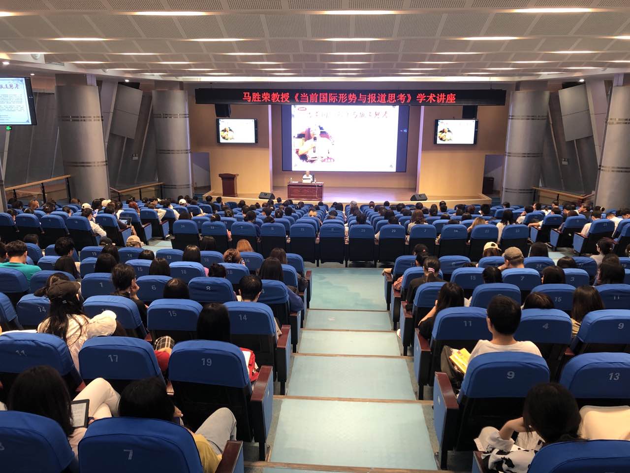 5月12日晚,原新华社副社长兼常务副总编辑,现重庆大学新闻学院名誉院长、博士生导师马胜荣教授应邀为文学与新闻学院师生作了《当前国际形势与报道思考》的专题讲座。讲座由文学与新闻学院院长王仕勇主持。学院师生共三百多人聆听了此次讲座。