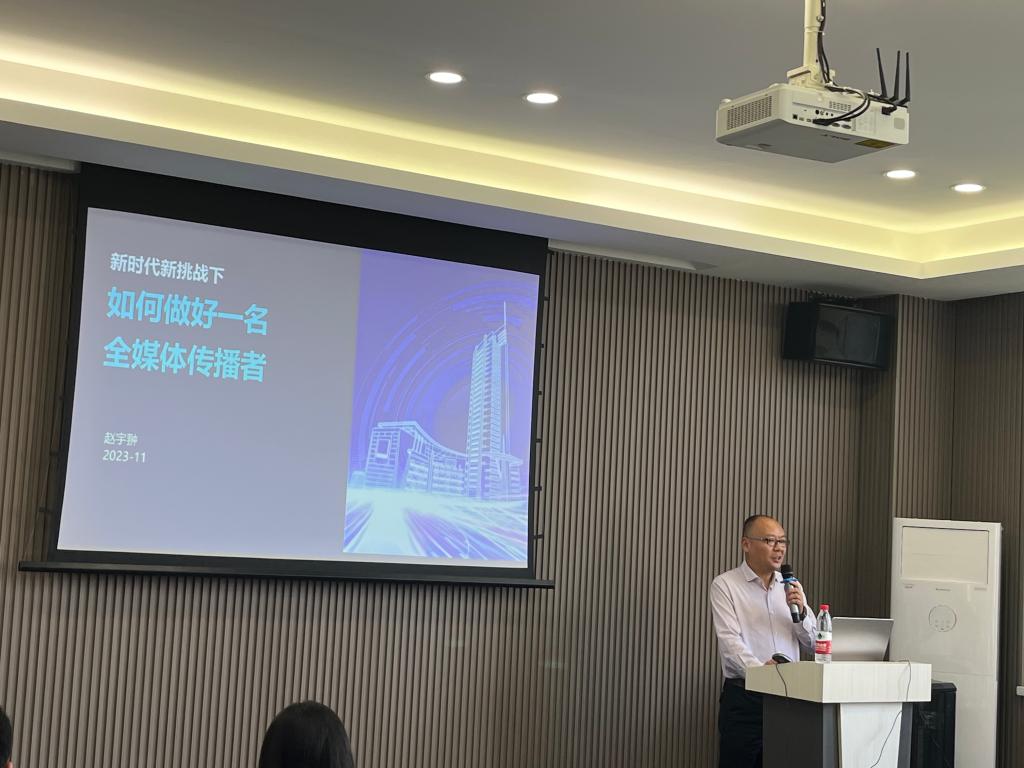 赵宇翀从新闻与传播行业的视角向大家阐述了“新时代”的定义,解释了当下新闻传播事业与新闻工作者正在面临的国际形势与现实挑战。党的二十大报告指出要“加强全媒体传播体系建设,塑造主流舆论新格局”,赵宇翀就此为大家提出了如何做好新时代新挑战下的全媒体传播工作的建议。