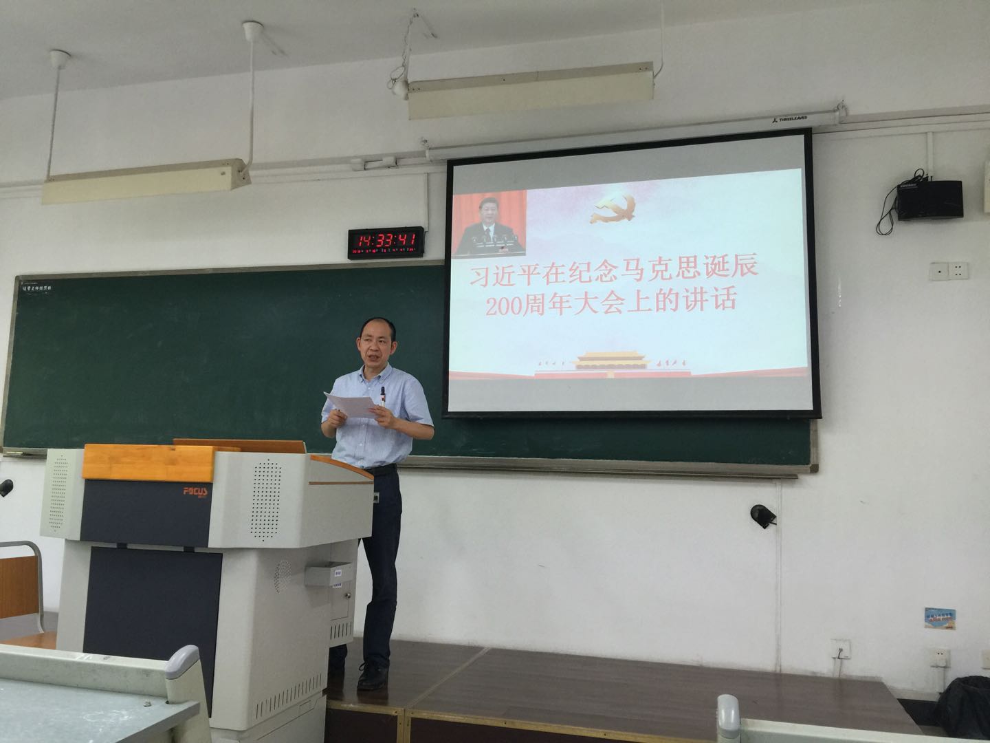 5月18日下午14:30,文新学院分党委在慧智楼90625教室召开了党员大会,学院全体党委委员、各支部书记以及全体教工党员参会。会上,文新学院分党委书记段庸生做了《学习贯彻习近平在纪念马克思诞辰200周年大会上的讲话精神》专题党课。