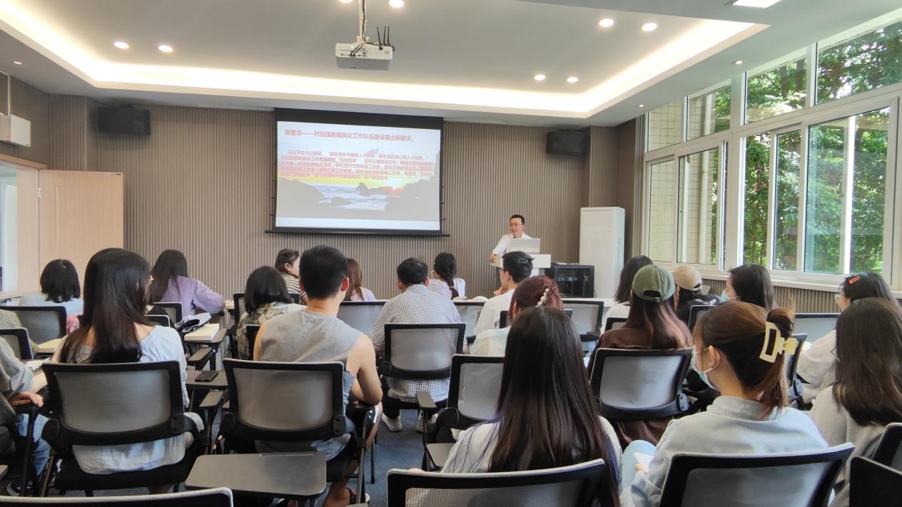 为深入学习贯彻习近平新时代中国特色社会主义思想主题教育,5月24日下午,文学与新闻学院党委副书记、院长殷俊为全体研究生党员讲授专题党课。