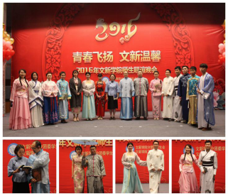 师生联谊晚会上,节目精彩纷呈,气氛热烈,高潮迭起。学院教师及学生代表精心编排了古装走秀表演、戏剧联唱、古筝书法合奏、爱国朗诵等节目,为观众献上了一场视听盛宴。节目中穿插的你来比划我来猜、词语接龙、随机抽奖等互动游戏,将晚会推向一个又一个高潮。晚会最后,一曲《难忘今宵》唱出了所有文新人的心声。