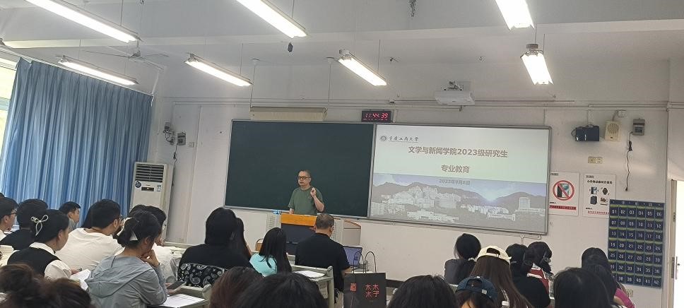 为引导研究生新生尽快转换身份、融入新环境、找准自身定位,9月8日上午10点30,文学与新闻学院2023级研究生新生入学专业教育在慧智楼90624教室召开。学院党委书记于频、党委副书记、院长殷俊、副院长邓伟、教师代表王凌峰出席会议,2023级全体研究生新生参加了这次入学专业教育。会议由文学与新闻学院副院长邓伟主持。
