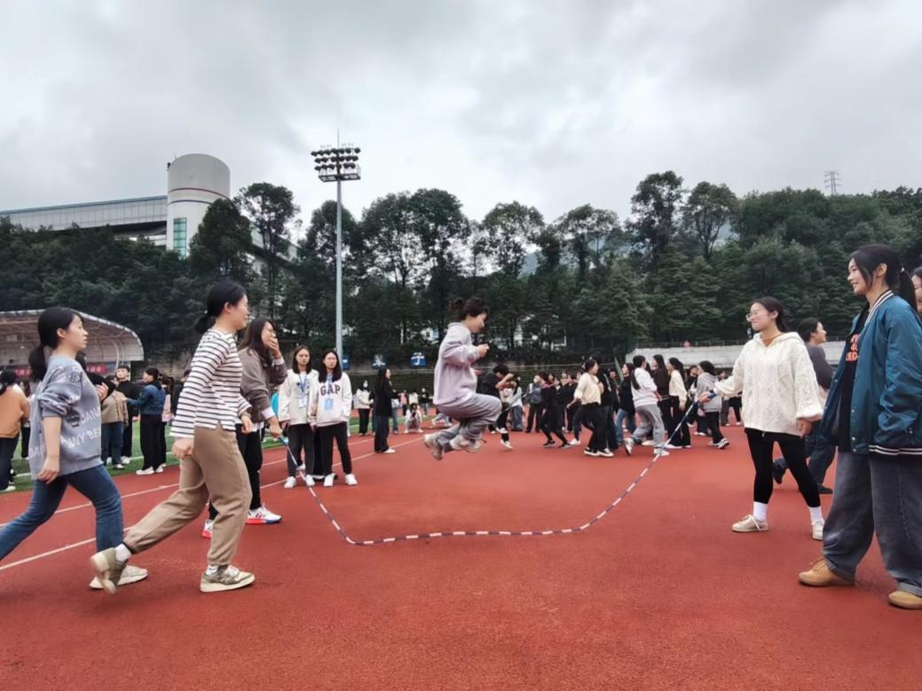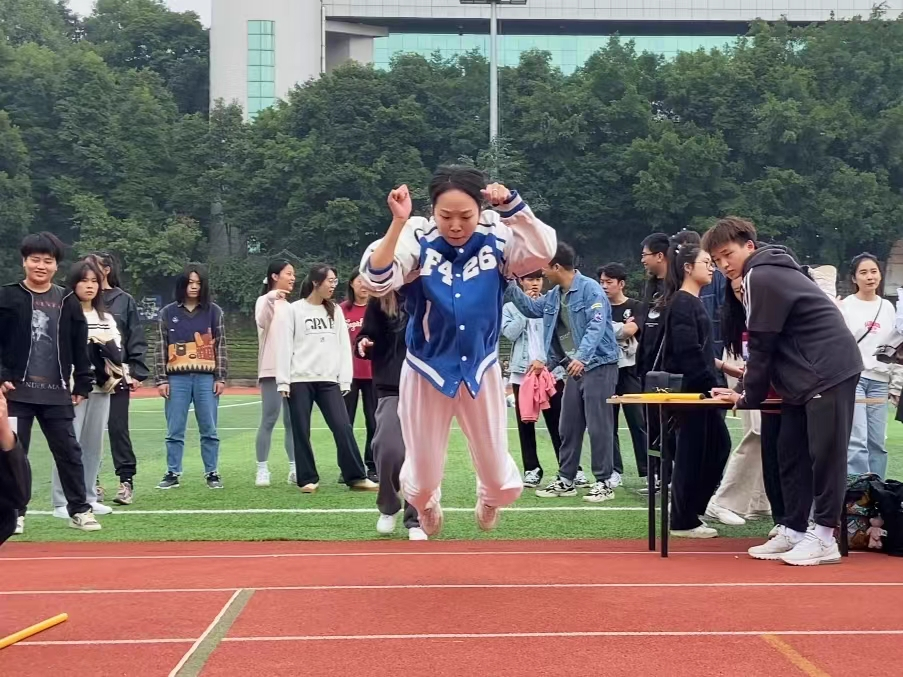 劈波斩浪共前进,团结一心勇争先。在团体项目中,文学与新闻学院共进行了集体“8”字跳绳、二人三足两项趣味团体竞赛项目。在集体“8”字跳绳项目中,研究生班主任唐玉星老师和研究生教学秘书魏静老师带领研究生运动员们灵活跃、紧绷每一寸肌肉,在绳索翻飞中不断跃腾,共同完成这项妙趣横生的体育项目。