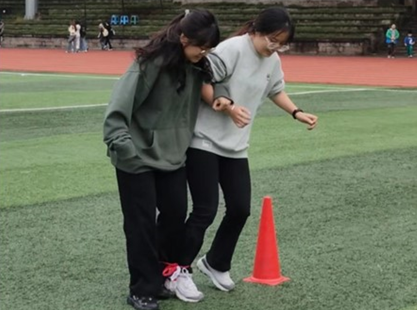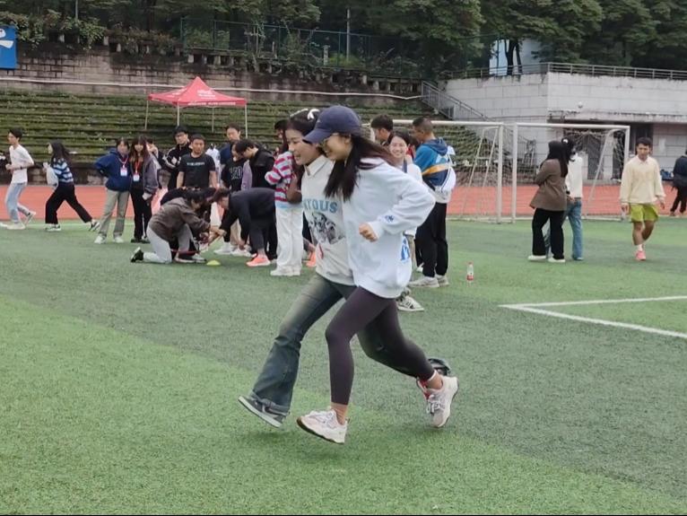 在两人三足项目中,我院研究生运动员们彼此团结一心、共同前行,最终在欢声笑语中结束了此次难忘的比赛。