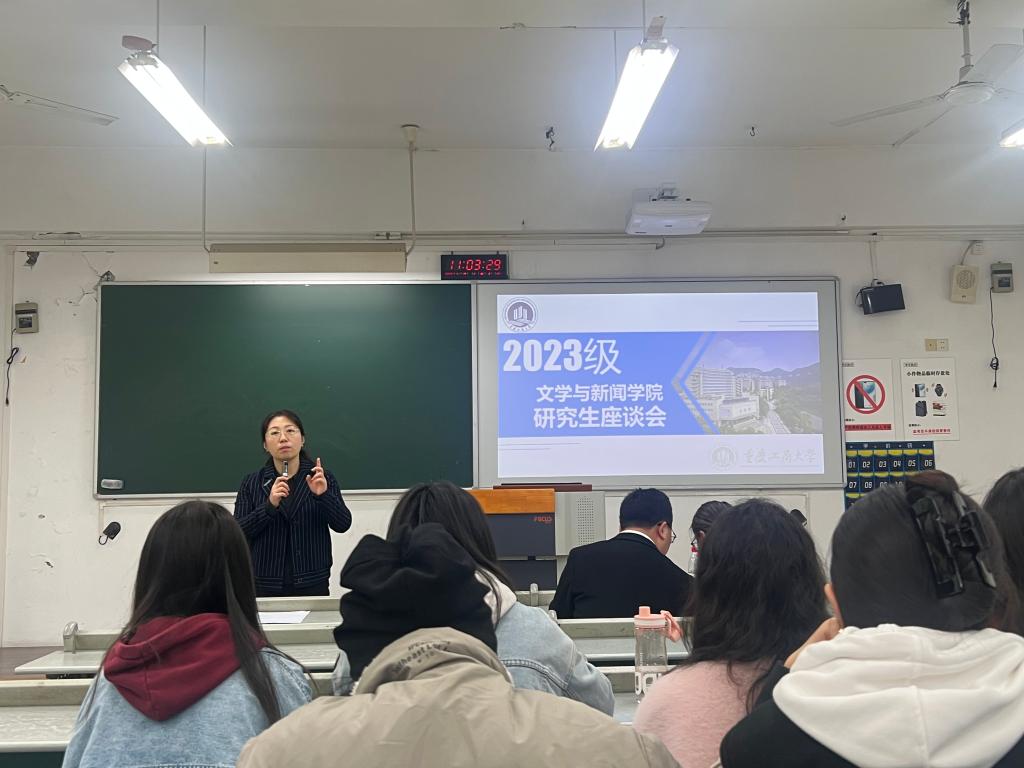 座谈会最后,由学院党委书记于频和院长殷俊总结发言,他们对我院2023级研究生的未来发展道路提出建议,倡导同学们勤学奋进,为未来新闻传播事业贡献自己的力量。