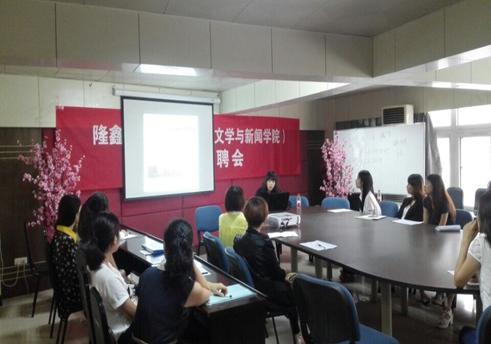 为切实做好我院2015届毕业生就业工作,搭建毕业生与用人单位的交流平台,9月26日下午,重庆隆鑫控股公司受文新学院邀请,人力资源部潘娜女士一行在我院90526会议室进行专场招聘,学院就业联络员肖婷老师和40余名11级毕业生参加。