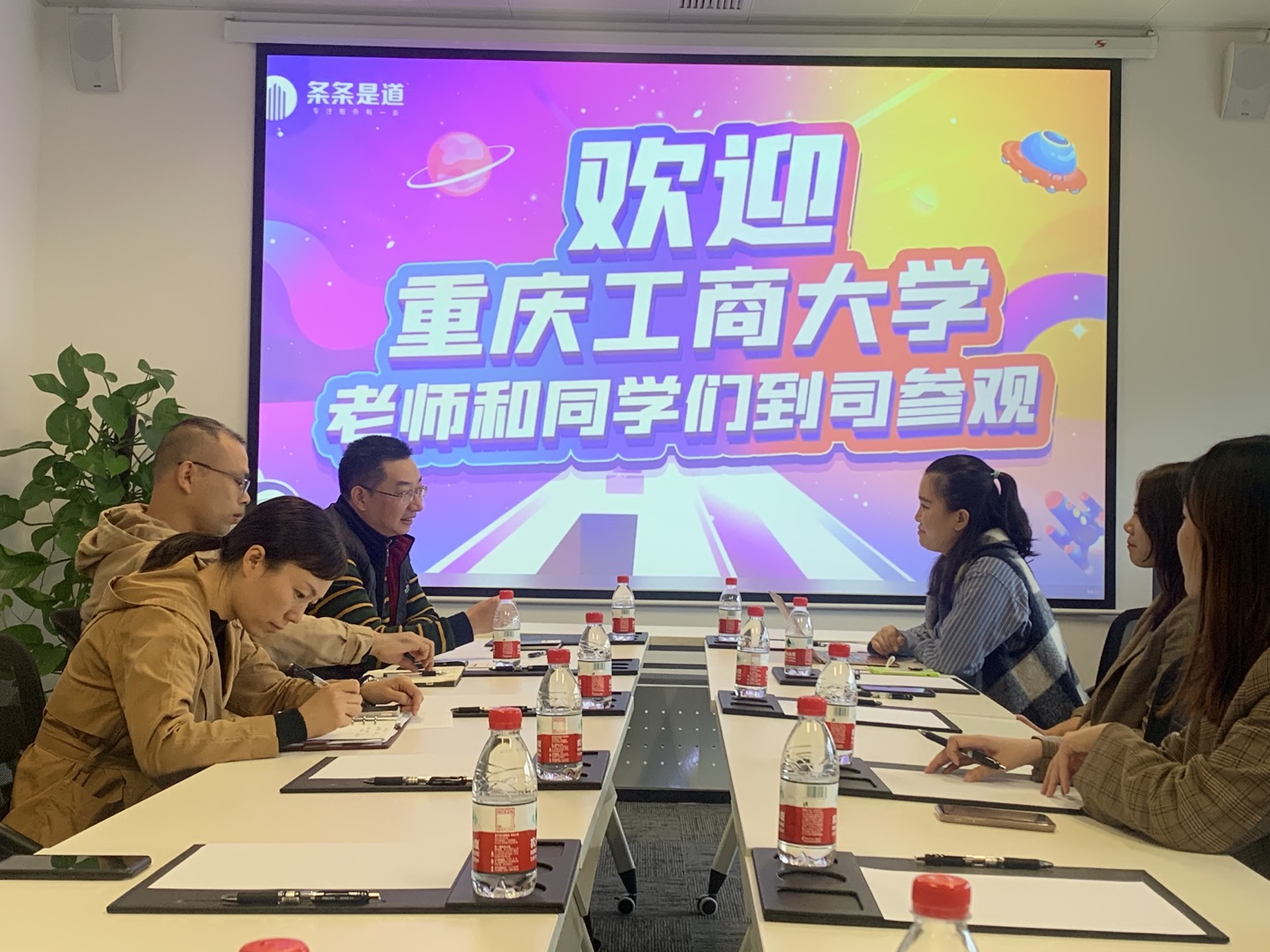 座谈会上,重庆条条是道网络科技有限公司相关负责人介绍了公司的发展历程、功能布局、人才队伍建设、优秀案例作品等情况,重点介绍了校园招聘和实习生岗位人才需求情况。优矩互动重庆分公司相关负责人重点介绍了“新优人”“新苗计划”实习生项目,以及短视频编导的岗位需求情况。