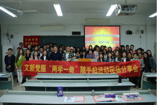 3月14日—4月21日,文新学院党服站成功举办以“聚焦生活点滴、传递红色正能量”为主题的“两学一做”随手拍系列活动。文新学院党总支副书记李华平、博士教师姚琦、党员服务站指导老师杜建清,以及文新党服成员70余人参加了此次活动。