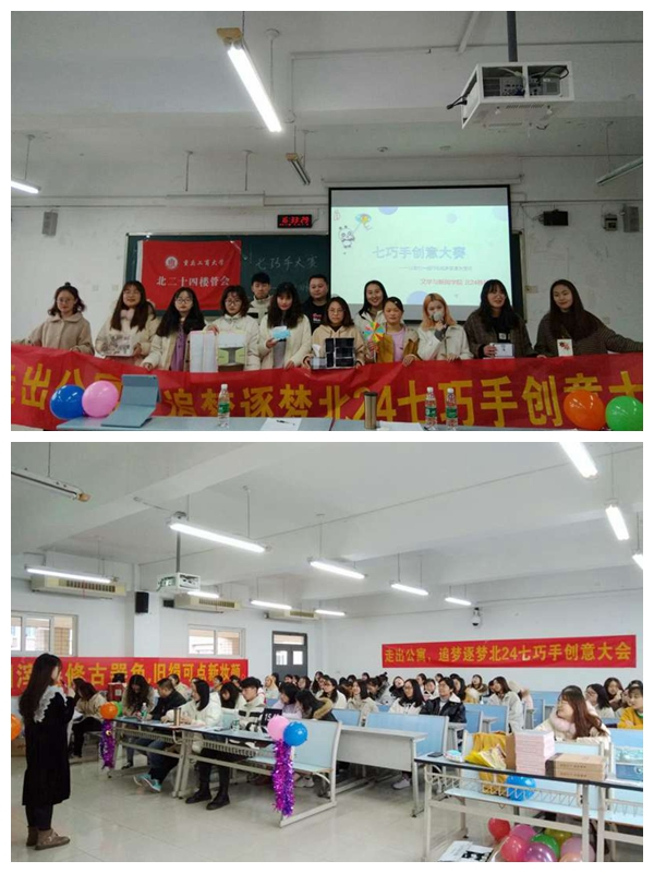 为了进一步提升大学生的环保意识,积极承担环保责任,拓展大学生的创新精神,北二十四楼管会于2019年11月29日在主校博智楼70403举办了以“我运动、我健康;我学习、我成长;我劳动、我光荣”为主题的“七巧手旧物改造创意大赛”。