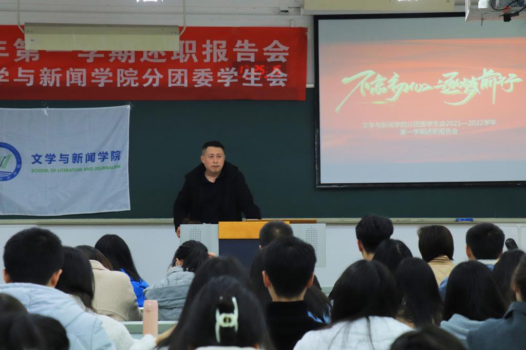为进一步适应学生会组织改革新形势,加强学生会组织管理和学生骨干队伍建设。12月17日,文学与新闻学院分团委学生会在慧智楼624举办了2021-2022年第一学期述职报告会,来自学生会的各部门部长进行了部门总结述职。我院党委副书记、纪委书记程元元,分团委书记刘平老师及文学与新闻学院分团委学生会执行主席以及志愿者参加了此次活动。