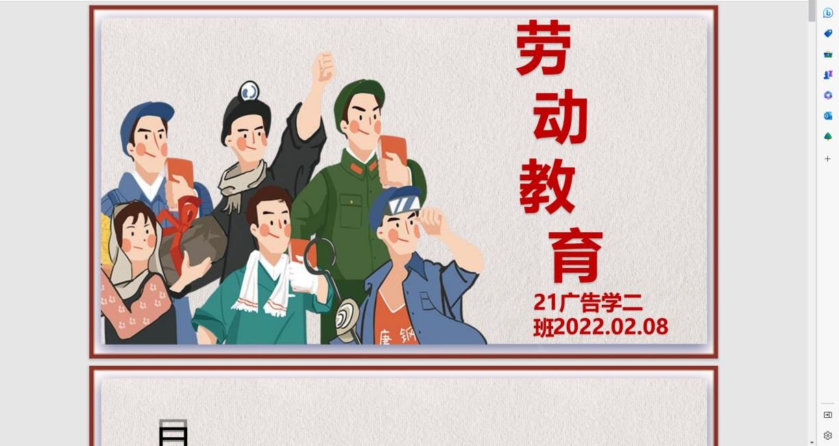 本次活动共收到了同学们的劳动实践材料和创作作品36份和9个班级提交的PPT等作品。其中在班级参赛中多个班级积极制作宣传“劳动教育与实践”的PPT,举办劳动教育知识班会,鼓励同学们踊跃参加线下劳动实践活动,从小事做起,从身边做起。在个人参赛项目中同学们也积极结合自身专业优势,参加各种形式活动,如:打卡本人日常生活劳动照片、制作社会实践劳动Vlog、制作宣传“劳动”的海报图、撰写劳动教育与实践的感想等,以多种方式体验劳动生活并分享自己的劳动成果,使其具备良好的劳动品质,充分发挥劳动教育实践活动的价值。