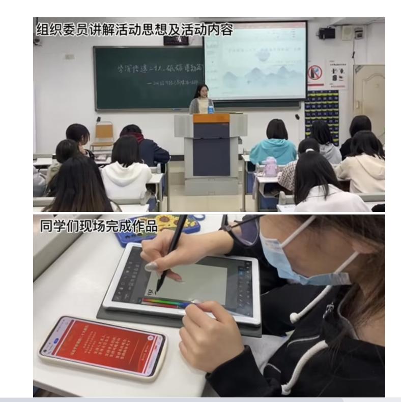 此次主题团日活动多个团支部积极参与其中,他们均结合了专业特色,围绕学习党的二十大精神,武装思想头脑等相关内容完成了主题团日活动的策划、实施及总结宣传。2021级新媒体一支部,不仅用心准备了PPT演讲汇报,还用书画绘画形式调动每个团员参与其中,并让他们以组为单位分享自己的创作理念。2020级新闻团支部以视频的形式展示了团日活动过程。在这次活动中,他们精选布置了团日活动现场,参加的团员们也热情高涨。