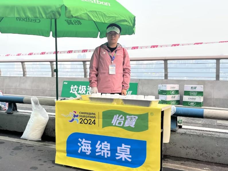 在本次赛事中,我院志愿者负责饮水饮料和吸水海绵的补给工作,他们按照要求提前将沾满水的海绵及装有运动饮料、矿泉水的纸杯有序地摆放在桌上供跑者取用,并及时补充物资,提供专业暖心的服务,同时送上一声声的“加油”和掌声鼓励,以饱满的状态让来自五湖四海的跑者们感受到重庆大学生的热情,彰显青春活力。