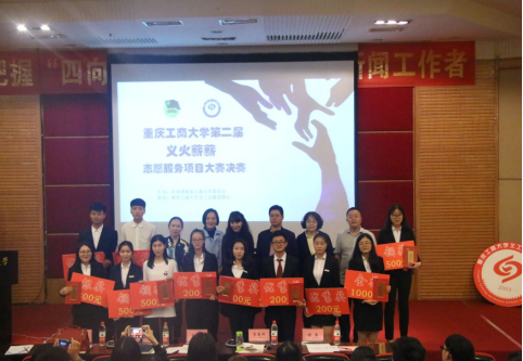 4月21日下午2时,重庆工商大学第二届“义火薪薪”志愿者服务项目大赛决赛在7200报告厅拉开帷幕。校党政办主任罗勇、校党委组织部部长郑夕春、学生处副处长李丽莎、校团委副书记吴佑波、重庆第二师范学院校团委书记马洁担任本次比赛的评委。