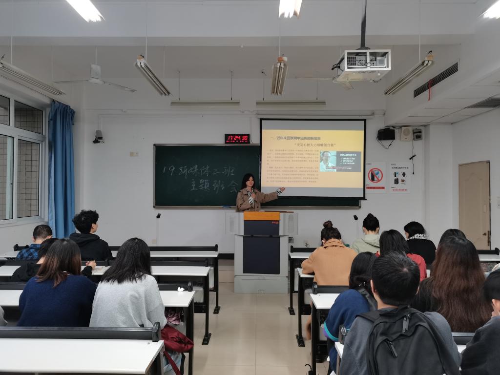 为提高同学们的媒介素养,规范其网络行为,10月21日下午19新媒体二班全体同学在90404顺利举行了以“提高媒介素养,理性畅游信息海洋——媒介素养提高分享”为主题的主题班会。