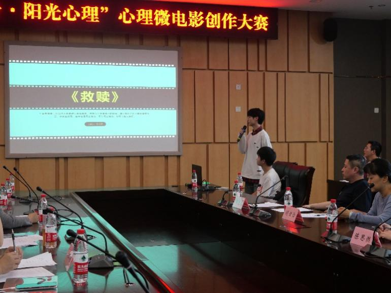 经过激烈的初赛,本次入围决赛的作品有《救赎》,《独白》,《me &you》,《喜欢你没有理由》,《致我们青春的迷茫》,《你一定要幸福》,《问题》,《听TA说》,《爱自己》,《爱》。每支决赛队伍都信心满满,做好了充足的准备。每个作品的展示环节分为两部分:第一部分是微电影的播放,每一部决赛作品都有其引人入胜之处。在这些微电影中,有的激励斗志,激励着同学们勇敢追逐自己的爱情;有的关注身边,让同学们对学校的心理资源有了更多丰富的了解;有的诉说纯真,讲述大学生在校园中的纯美爱情。每一个微电影作品都有给评委和观众留下深刻印象之处。第二部分是微电影作品的讲解环节,每支队伍都派出实力队员结合精美的PPT进行作品讲解,让评委和同学们了解到微电影创作背后的艰辛与不易。比赛中途休息期间设置了心理问题相关的趣味问答环节,参赛选手们积极抢答,现场再次掀起高潮。