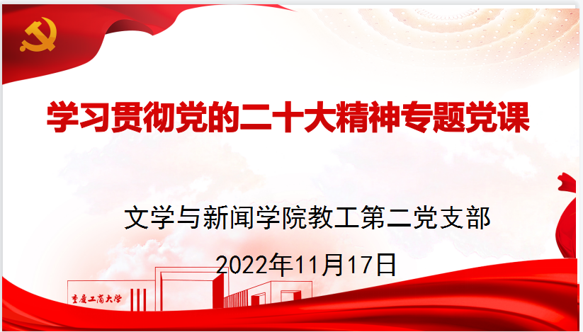 11月17日晚上,我院教工第二党支部通过企业微信会议方式举办了学习贯彻党的二十大精神专题党课,支部书记邵茹波副教授、汉语言文学系王彦杰博士分别围绕党的二十大报告中的第五部分进行了讲解,支部全体党员参加了党课学习。