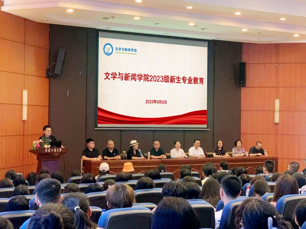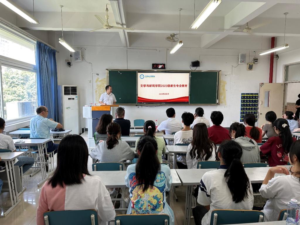 9月8日,文学与新闻学院在江北校区开展了2023级新生专业教育。文学与新闻学院党委书记于频、院长殷俊、副书记程元元、副院长郑笑眉,系主任张玉霞、王凌峰、周之涵、姚琦,教师代表段庸生、红尘、王烨、王彦杰,2023级全体新生参加了此次活动。新闻传播类专业入学教育由王世华老师主持,汉语言文学专业入学教育由周之涵老师主持。