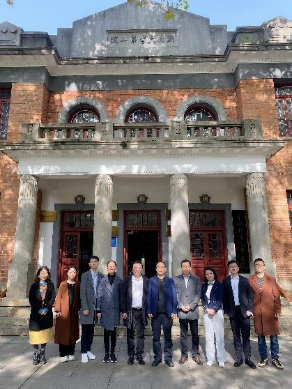 为推进学院高质量发展,借鉴兄弟院校在人才培养、学科建设与科研管理等方面的先进经验和做法,11月16日,我院院长殷俊教授,副院长郑笑眉副教授,汉语言文学系主任周之涵老师、主任助理王彦杰老师,广播电视系副主任谈华伟老师,网络与新媒体系张月月老师、杜建清老师一行先后赴湖南大学中国语言文学学院、湖南师范大学新闻与传播学院调研交流。