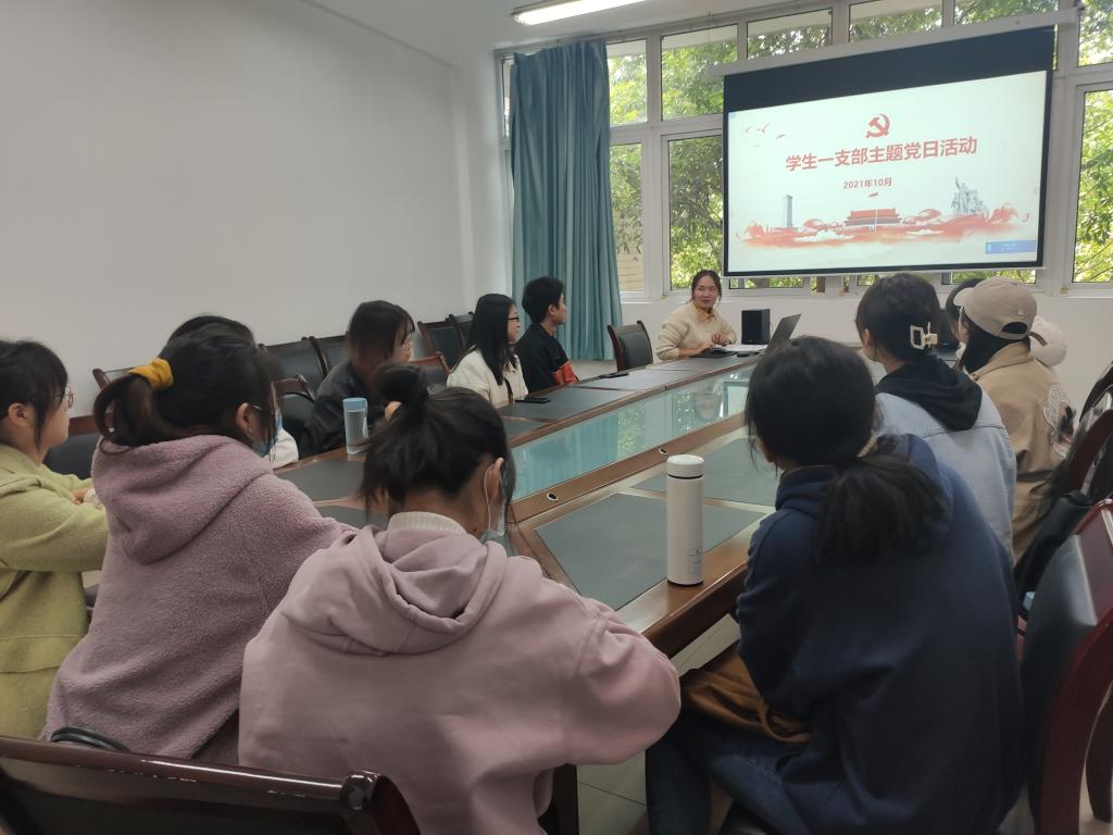 10月29日,学生一支部在慧智楼90528会议室开展10月份的党史学习教育暨主题党日活动,会议由支部书记张小焕老师主持。