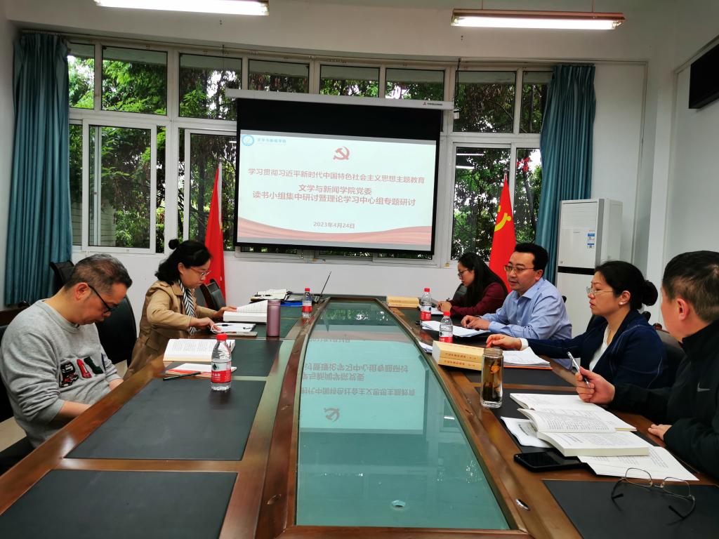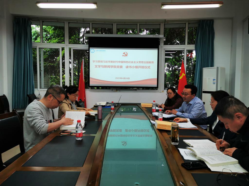 开班式结束后,学院主题教育读书小组举行了集中研讨暨(第一次)理论学习中心组专题研讨会,采取会前自学和会上集中学习相结合方式进行。会上,5位读书小组成员原原本本读原文,领学了《习近平著作选读》(第一卷)、《习近平著作选读》(第二卷)、《习近平新时代中国特色社会主义思想专题摘编》、《论党的自我革命》部分章节,于频朗读领学了《传达教育部召开学习贯彻习近平新时代中国特色社会主义思想主题教育动员部署会精神》《高举中国特色社会主义伟大旗帜,为全面建设社会主义现代化国家而团结奋斗》《决胜全面建成小康社会,夺取新时代中国特色社会主义伟大胜利》《认真学习党章,严格遵守党章》等文章;党委副书记、院长殷俊朗读领学了《坚持党的新闻舆论工作的正确政治方向》等内容;党委副书记程元元朗读领学了《时刻保持解决大党独有难题的清醒和坚定,把党的伟大自我革命进行到底》等内容;副院长邓伟朗读领学了《要有高度的文化自信》等内容;副院长郑笑眉朗读领学了《文明因交流而多彩,文明因互鉴而丰富》《坚持总体国家安全观》《培养德智体美劳全面发展的社会主义建设者和接班人》等内容。